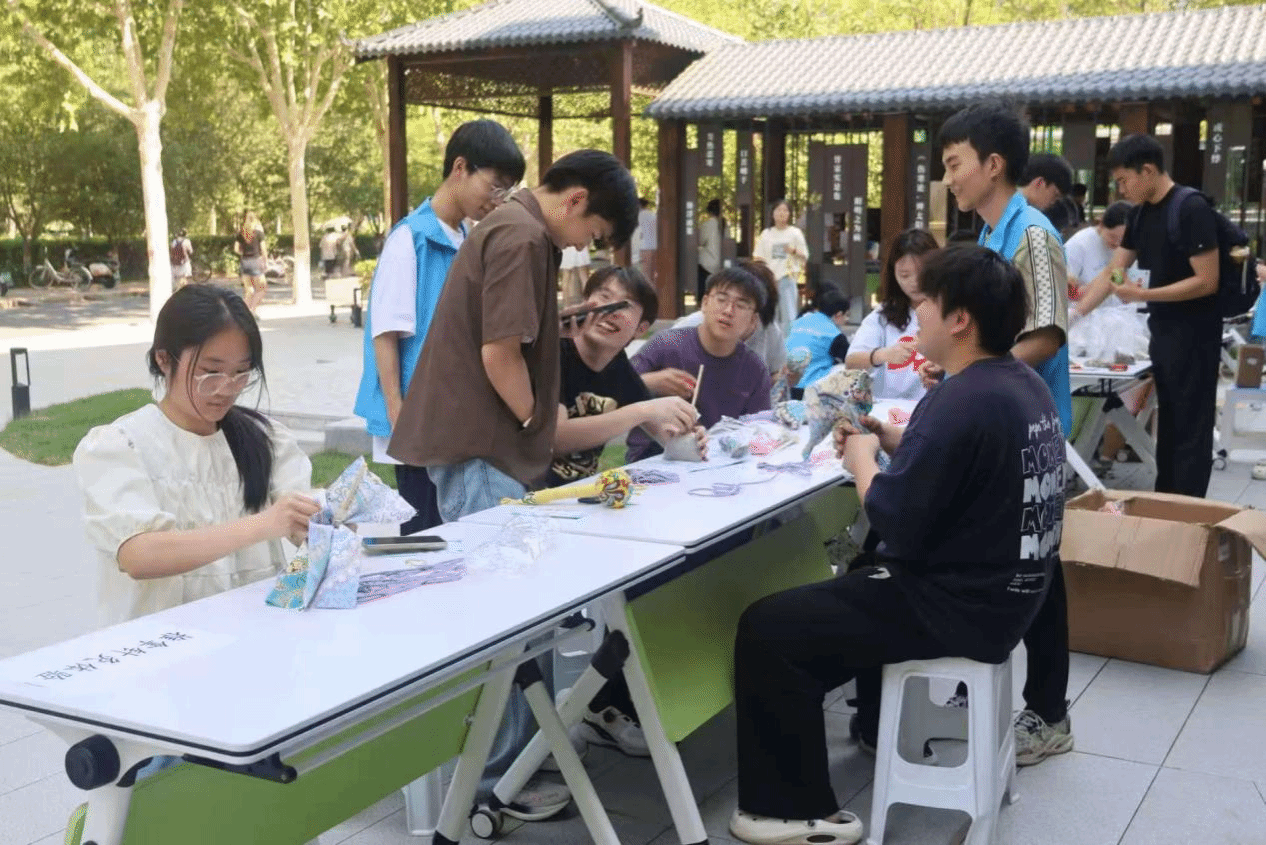 市集巧妙融合生活气息与文化传承。为了让同学们在游戏与手工中沉浸式体验中医药魅力,市集设置创意摊位,旧物流转、文创碰撞,搭配专属“仲景币”交易。本次活动邀请郑州工程技术学院的听障学生共同参与。两校学子在动手实践和互动交流中,共同感受中医药文化的博大精深。