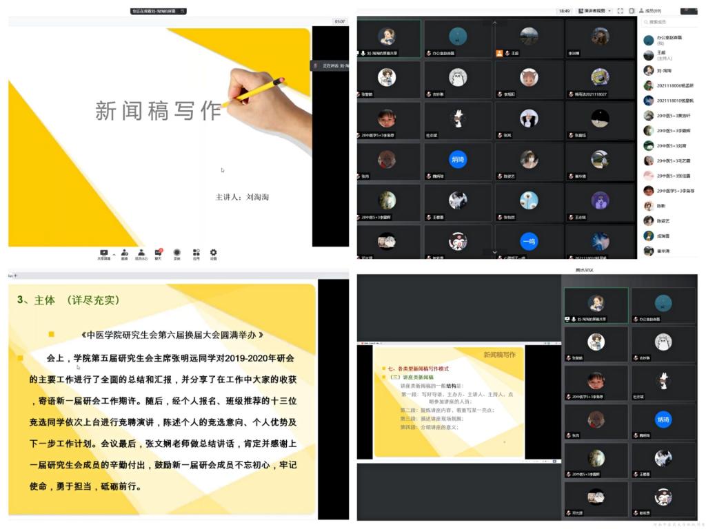 本网讯(文/王超 图/张佳露)为切实提高我院学生会工作能力与实效,推进学生干部素质能力建设,中医学院(仲景学院)分团委立足工作实际,于2022年3月24日起组织开展学生会能力提升专题培训,第一期内容为通讯稿撰写专题,由学工办副主任刘淘淘老师主讲。