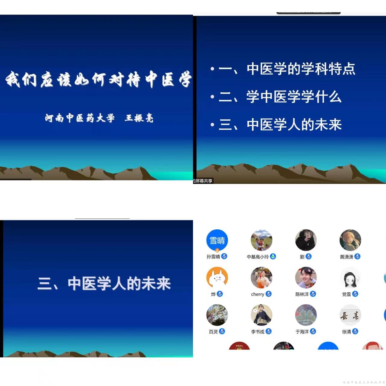 本网讯(图文/刘淘淘)为全面落实学校秋季学期工作中入学教育内容的安排,引导2022级新生尽快适应学校生活,明确研究生阶段的科研学习规划,2022年9月1日下午,研工办、学工办邀请校伤寒学教研室王振亮教授、中医基础理论教研室高小玲教授为2022级研究生集中开展线上新生入学教育工作。