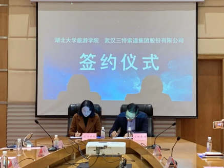 12月23日下午,湖北大学旅游学院与武汉三特索道集团股份有限公司在湖北大学会议中心思齐厅签署合作协议并举行产学研合作基地揭牌仪式。双方就产学研合作、学生实习实践、MTA人才培养、学生奖励资助等方面进行了深入交流,并达成基本共识。
