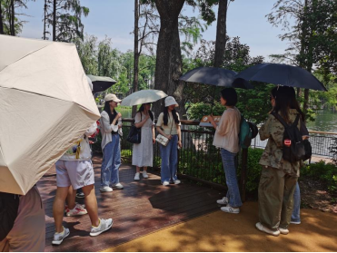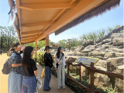 围绕教学目标,邱海莲老师一方面引导学生参观景区现场,讲解景区服务场景设计原则,不断启发同学们思考旅游景区服务场景对不同利益相关者行为的影响,共同探究服务场景三个环境维度在武汉动物园的具体表现,让课堂所学同景区实际联系起来,让服务管理的服务落地。